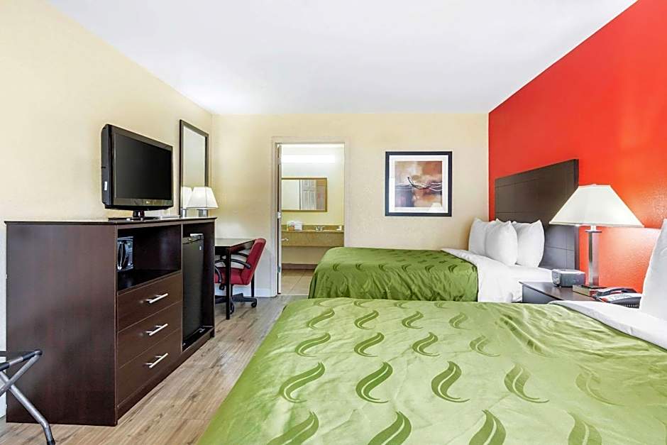 This queen room includes a microwave, refrigerator, and coffee-making facilities. A hair dryer, ironing facilities, and free WiFi are provided.